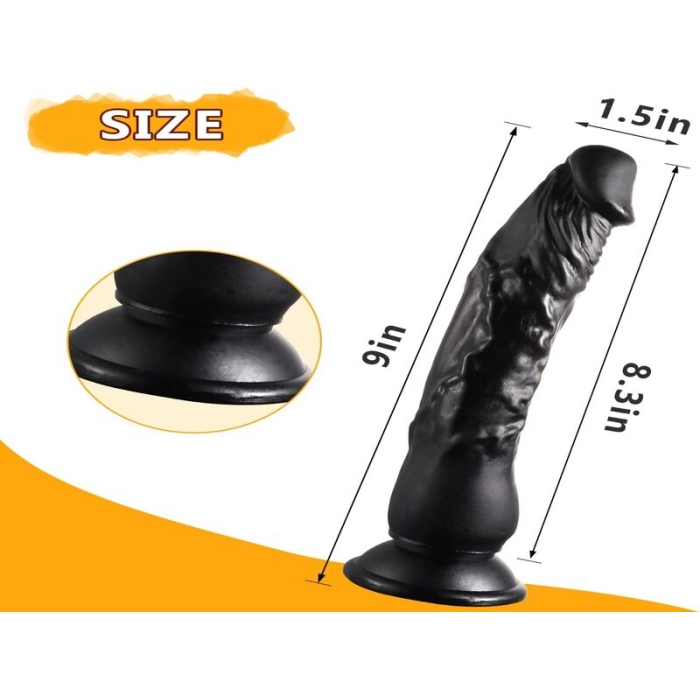 23 cm Siyah Dildo Penis Tessiz |